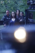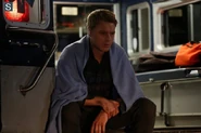 Back in the Alaska woods, Matthew joins the campfire, where Ressler is masquerading as one of the dead. Noticing Ressler’s shaking hand, Matthew attacks, pulling out his buck knife. Ressler stabs Matthew in the gut with the arrowhead. Ressler runs into the woods.